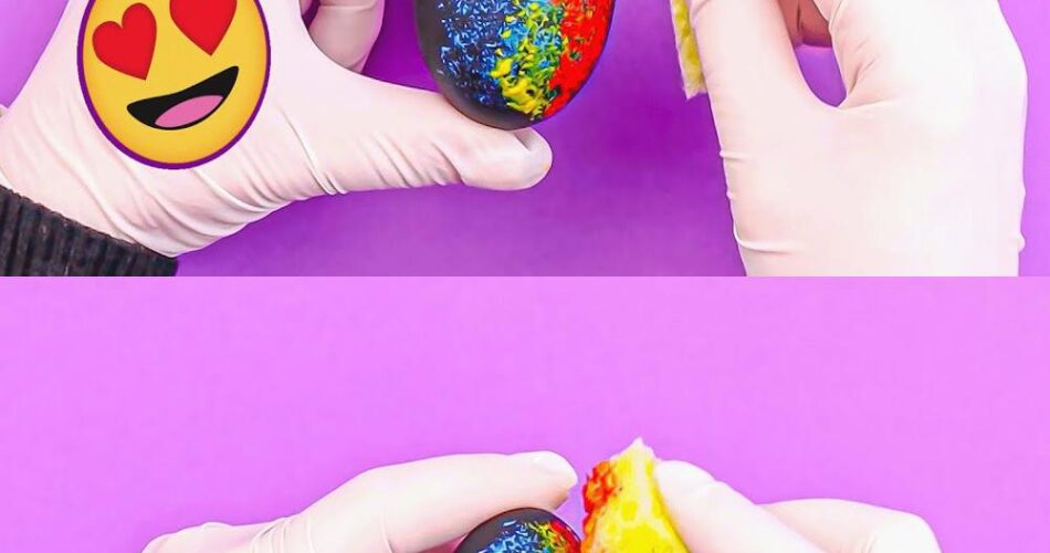- Experimente a técnica de imersão: mergulhe o ovo na tinta para obter um efeito em mármore.