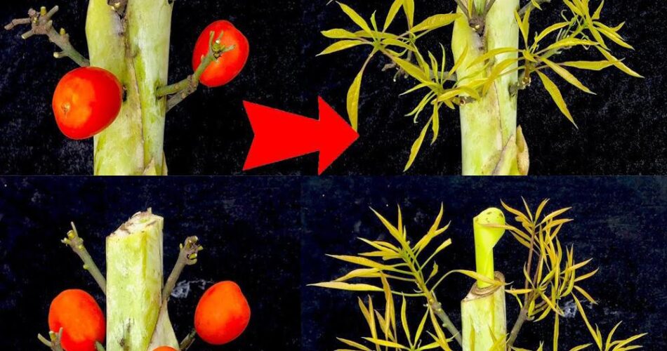 A técnica de enxertar ramos de manga em árvores de banana favorece o rápido crescimento de ramos