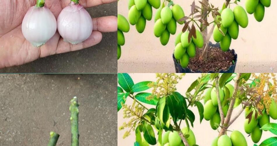 O enxerto de árvores de manga com cebolas é uma técnica antiga usada por jardineiros para promover o enraizamento e acelerar o frutificação das árvores. Este método inteligente é inserir cebolas entre a haste e a raiz da árvore de manga para estimular o processo de crescimento. Aqui está um guia prático para implementar com sucesso esta técnica de enxerto: