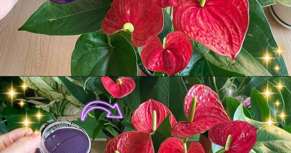 Apenas um copo de água na raiz, o Anthurium floresce repentinamente em abundância
