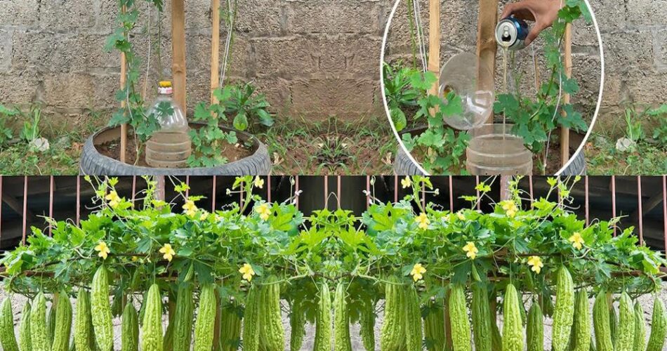 Como crescer melão amargo em pneus para famílias sem jardim, com fertilizante à base de cerveja