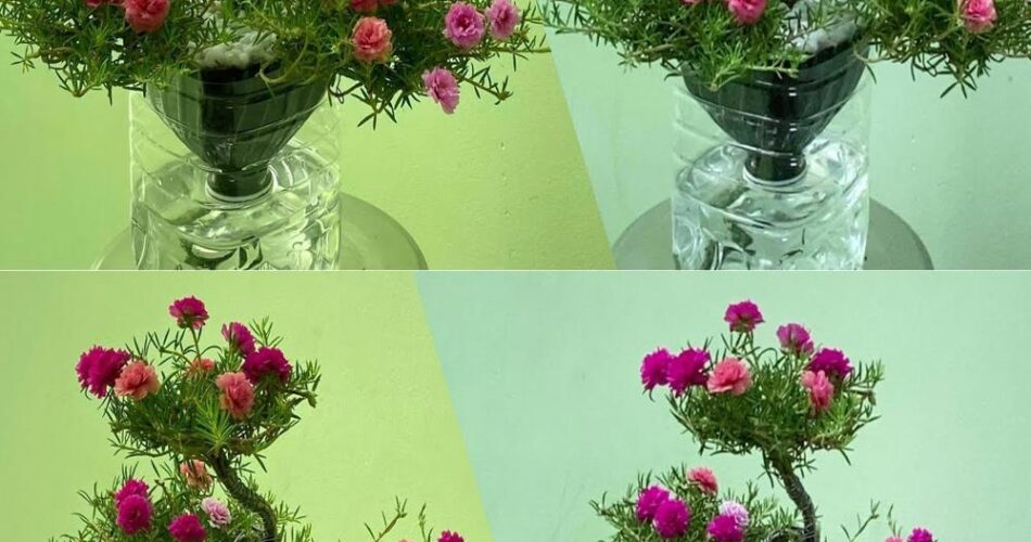 Como criar bonsai florido bonito em dez horas sem precisar de água em um pote de plástico reciclado, simples e bonito