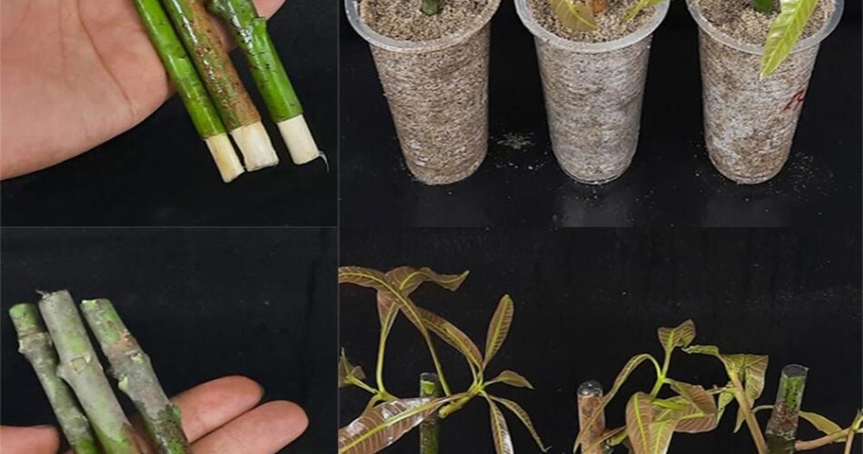 • Escolha cortes saudáveis e vigorosos, cerca de 30 cm de comprimento, retirados de ramos maduros da árvore de manga.