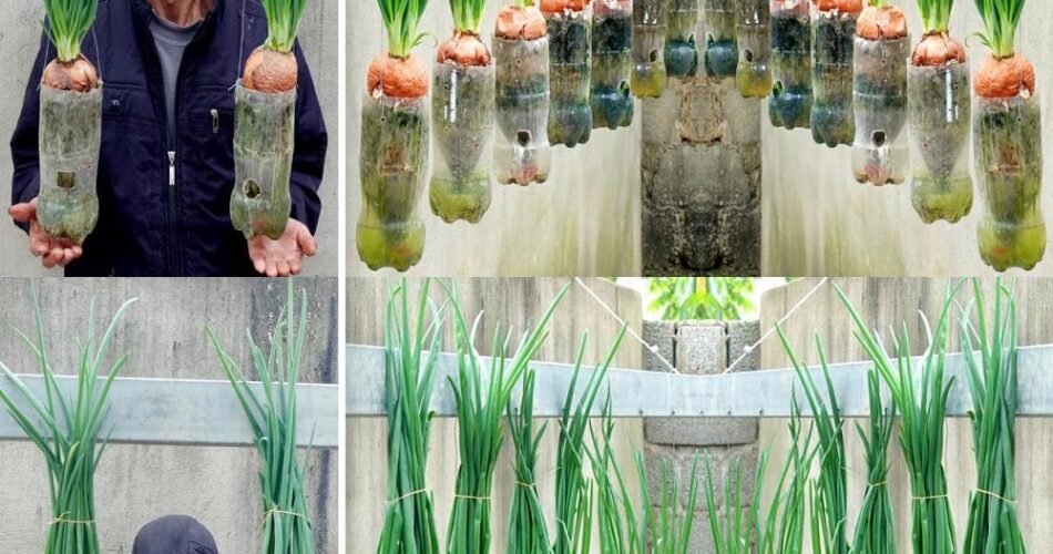 Como crescer cebolas com apenas algumas pequenas garrafas de plástico: resultados incríveis!