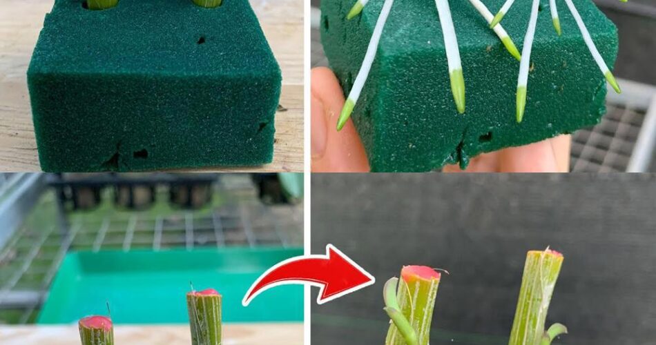 Coloque os cortes em um lugar brilhante, mas sem luz solar direta. Manter a umidade constante pulverizando água regularmente na espuma floral. Além disso, mantenha uma temperatura estável e ligeiramente quente para promover o crescimento da raiz.