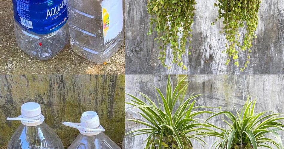 Flores da planta em garrafas de plástico