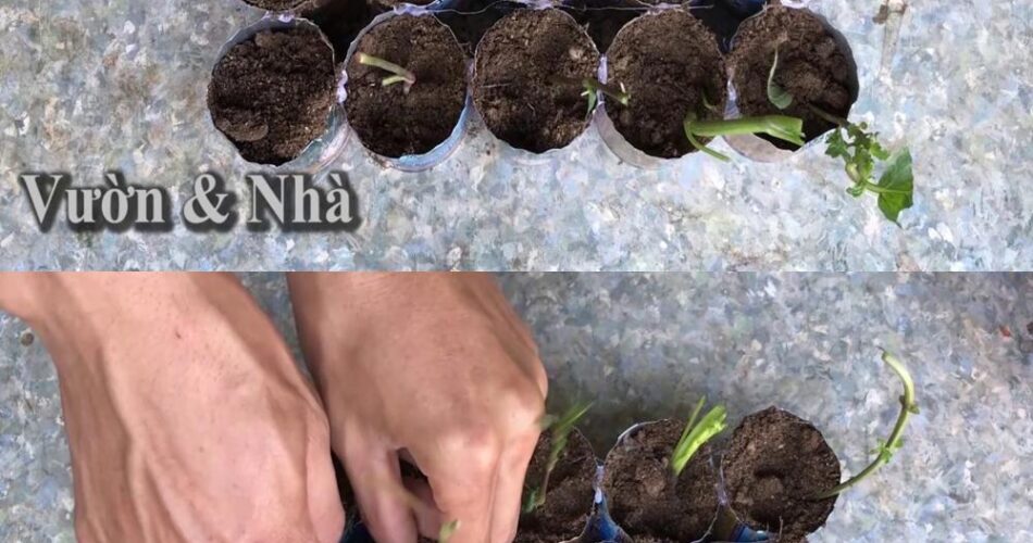 - Mergulhe pequenos buracos no solo e transplante suavemente as plantas, cuidando para não danificá-las.