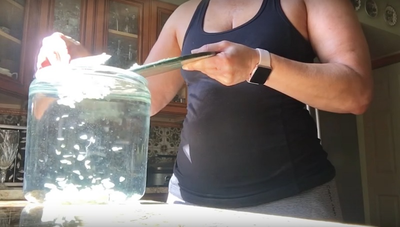 - Verter a solução para um frasco de vidro e deixar repousar durante um dia.
