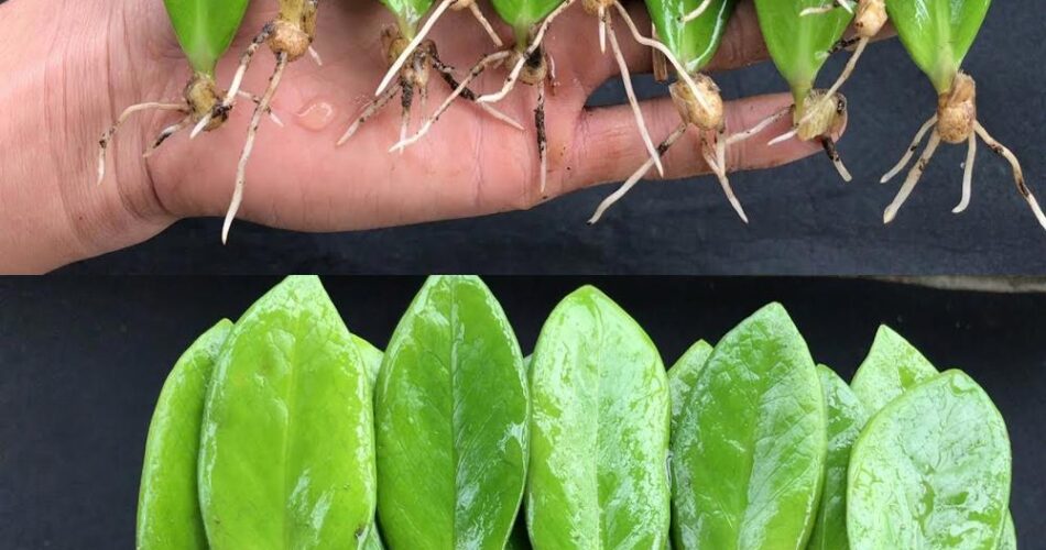Propagando a planta Zamioculcas zamiifolia por hastes de corte e folhas