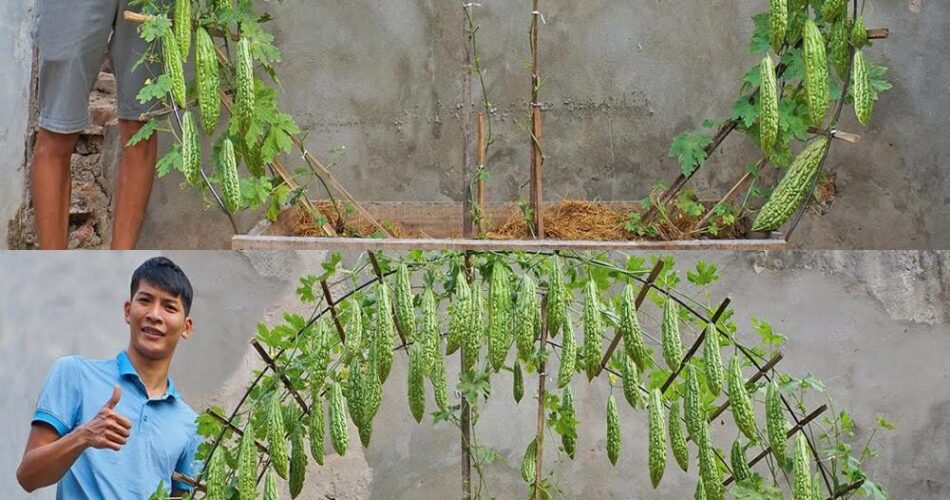Reciclar palha e bananas para facilmente crescer melão amargo em casa – muita fruta!