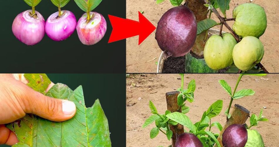 A transplantação é uma técnica horticultural comum usada para propagar árvores de fruto e obter variedades únicas e interessantes. No caso da guava, um método inovador é usar cebola roxa como enxerto para produzir frutas de duas cores na árvore. O seguinte é uma abordagem passo a passo para este transplante: