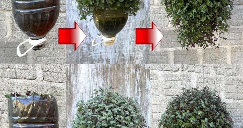Transforme garrafas de plástico em potes para crescer Callasia repens árvore